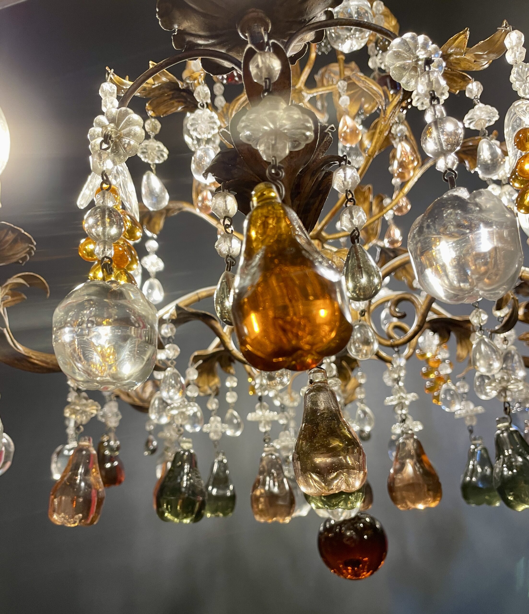 Venetian chandelier with hand blown Murano fruit, crafted by Venetian master glassmakers. Now fully restored and rewired by @manganbrothers lighting restorers. At its full length 92cm (3ft high)The chain can be shortened. x 61cm (2ft) wide with six lights.