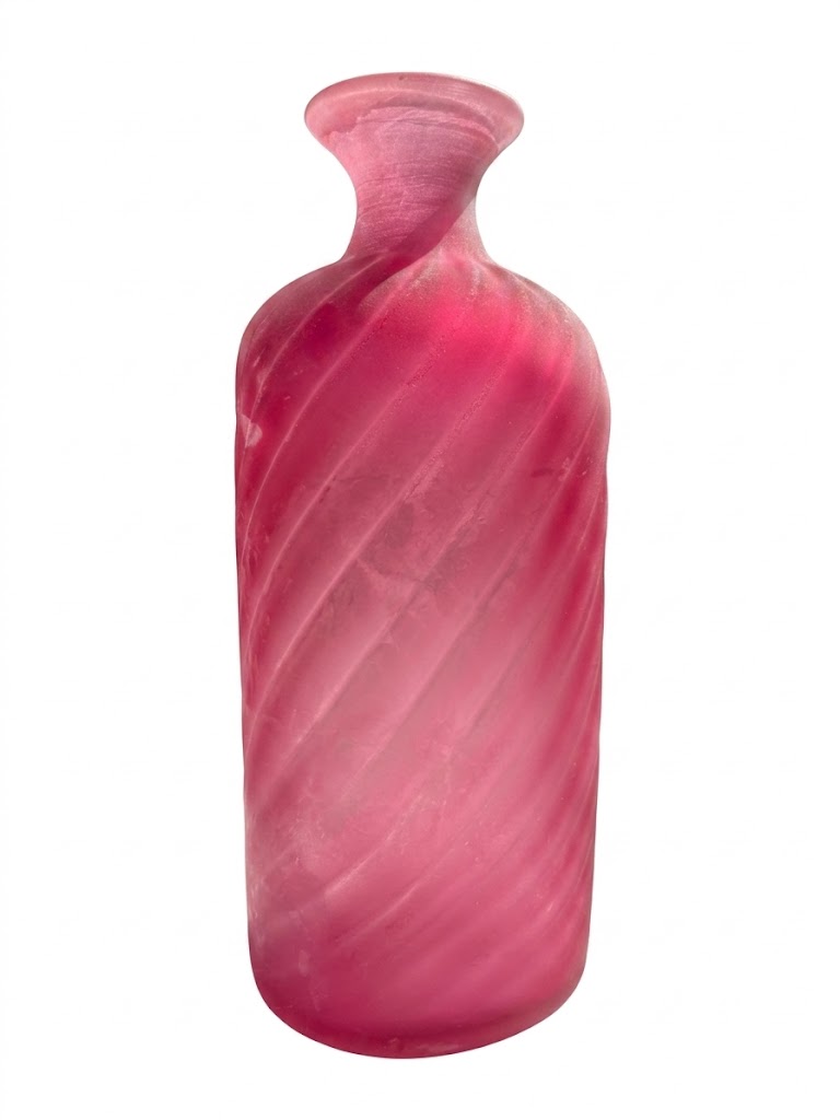 The Satinato Finish: The entire surface has been acid-etched or sandblasted to achieve a matte, velvety texture. This “frosted” look diffuses light beautifully, softening the bold color and giving the piece a sophisticated, non-reflective glow.