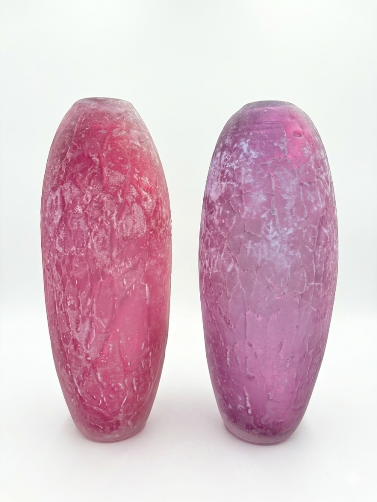 The Left Vase: A warm, vibrant raspberry pink that leans toward a terracotta glow.