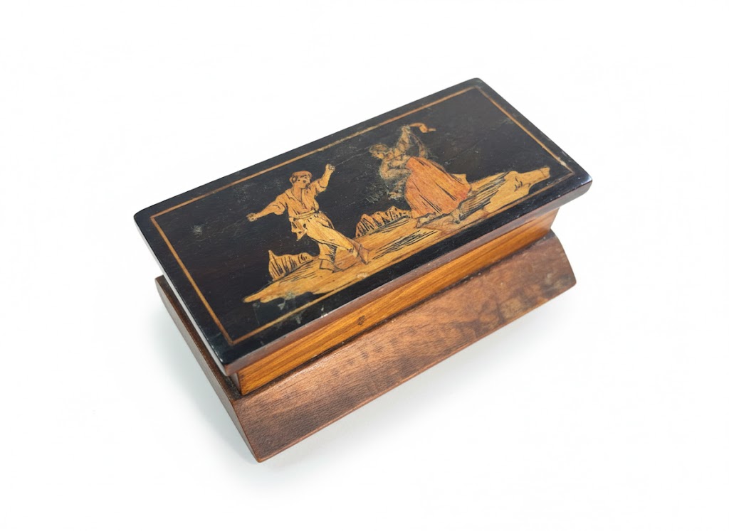 Italian 19th Century Sorrento Box in Olive Wood with inlaid Figures (IP)