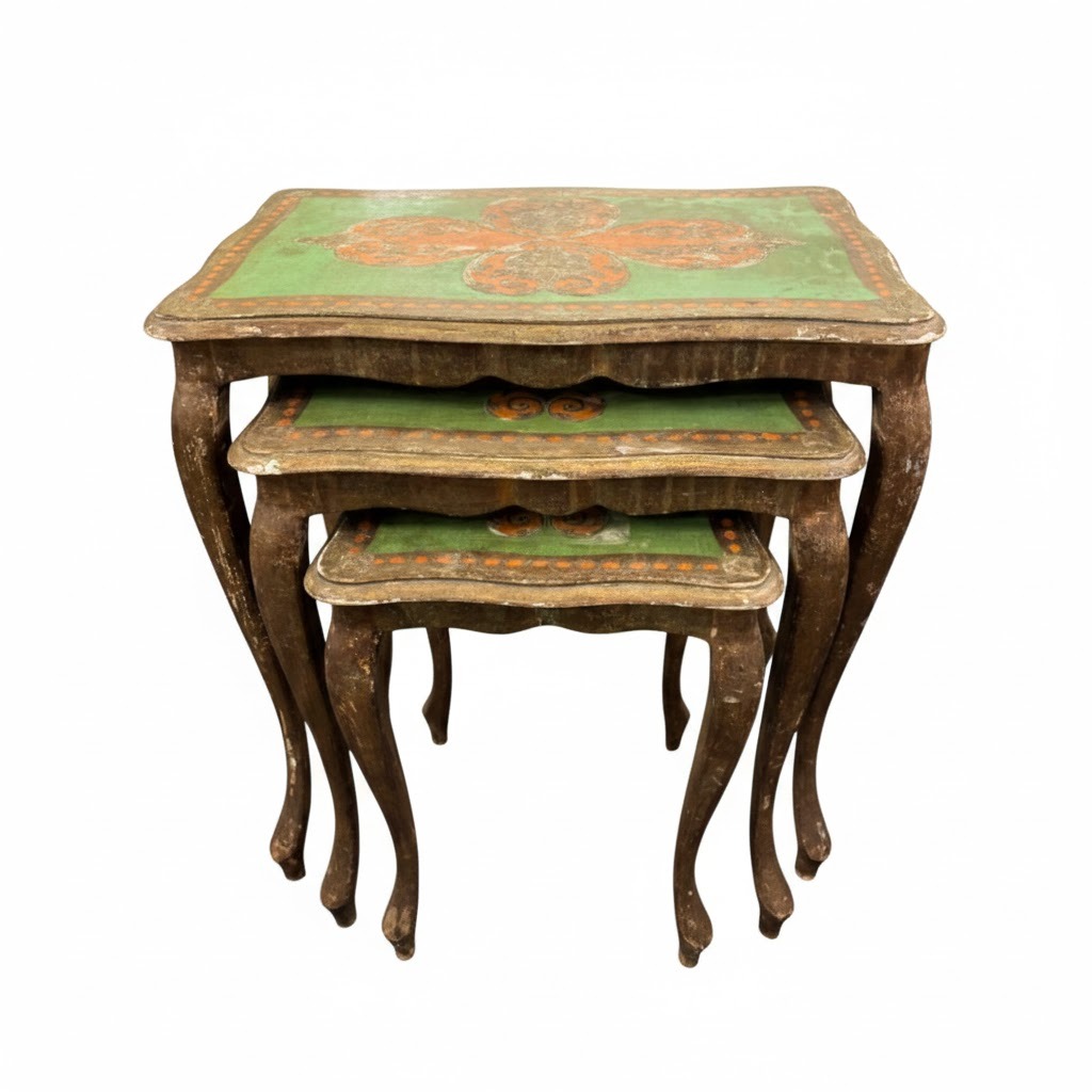 Nest of Florentine Tables in green and Gold (Circa 1940)
