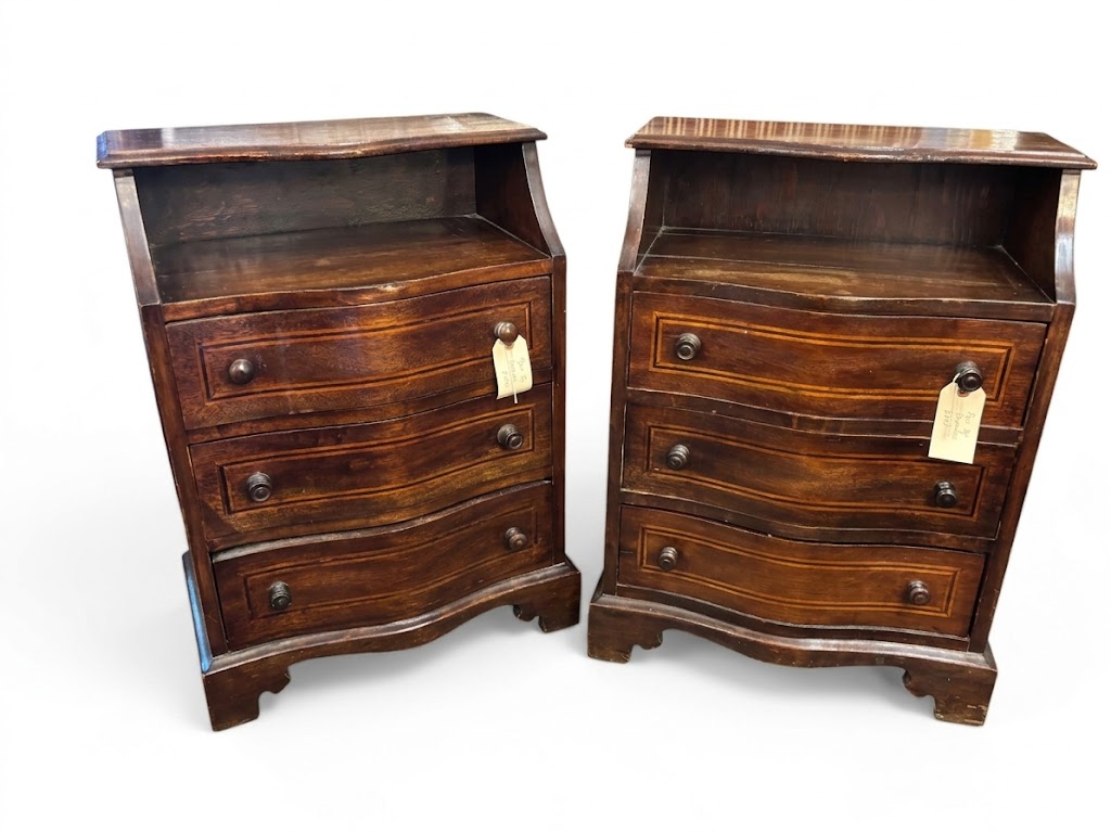 Pair in Italian inlaid bedsides with three drawers.(GHP)