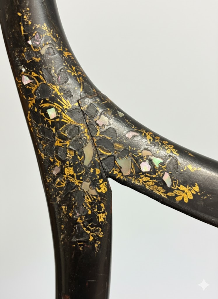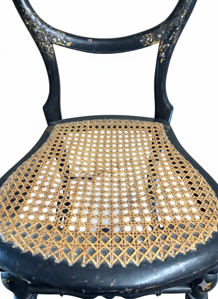 Victorian Ebonized Cane inlaid with Mother of Pearl & Gilding (Circa 1900) (BNP) 37cm x 37cm x 85cm