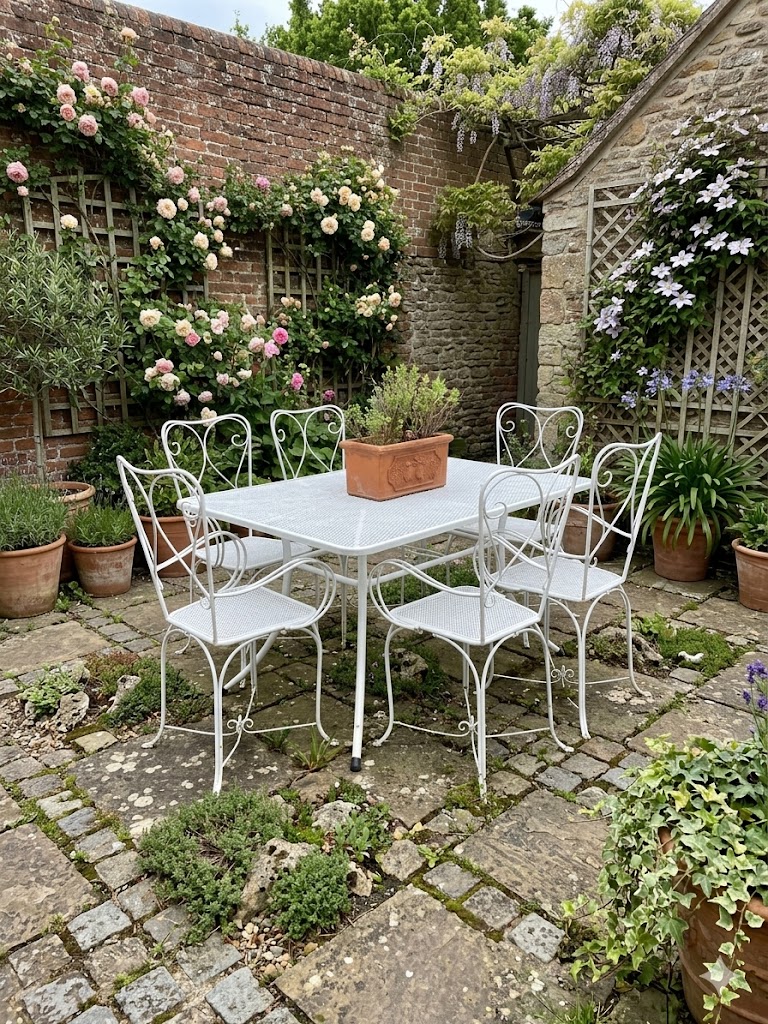 Vintage Italian Garden table and six chairs. Perfect for outside dining and entertaining.