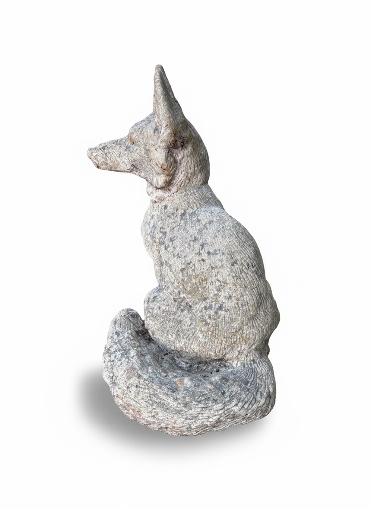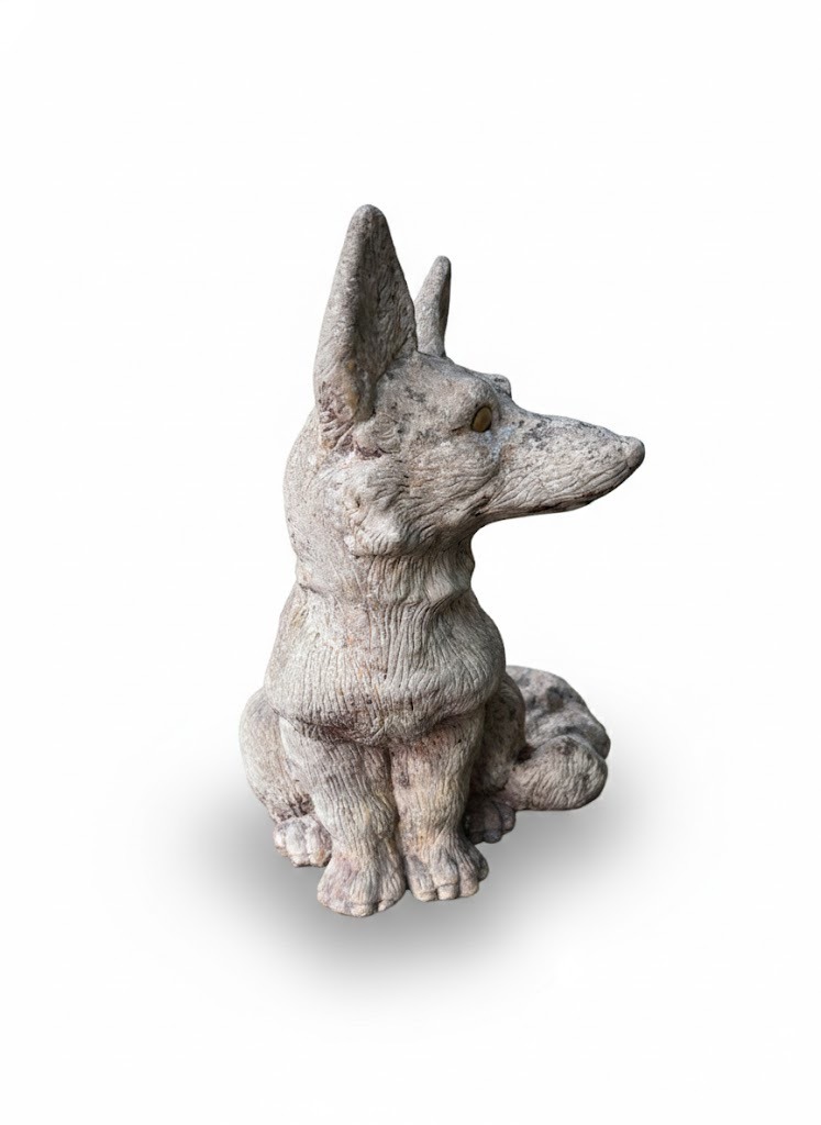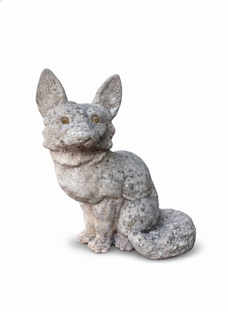 Stone Cast Fox Garden Ornament with orange glass eyes (NP), 33cm (13″) x 30cm (12″) x 25cm (10″)
