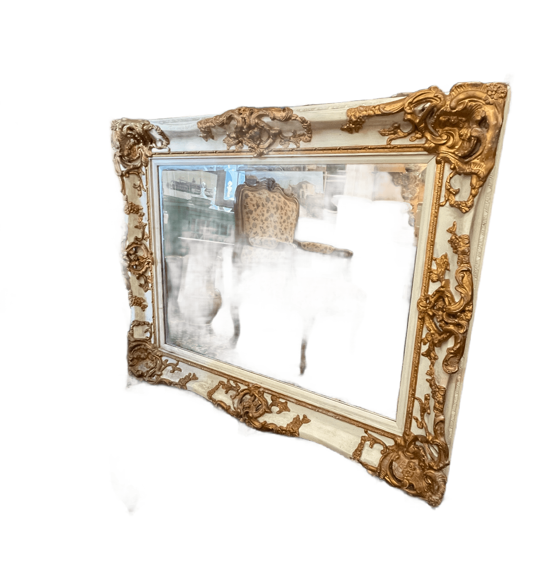 Victorian English frame mirror, with gilding and painted. 133cm (52″)high x 108cm(43″)wide.(BRPP)