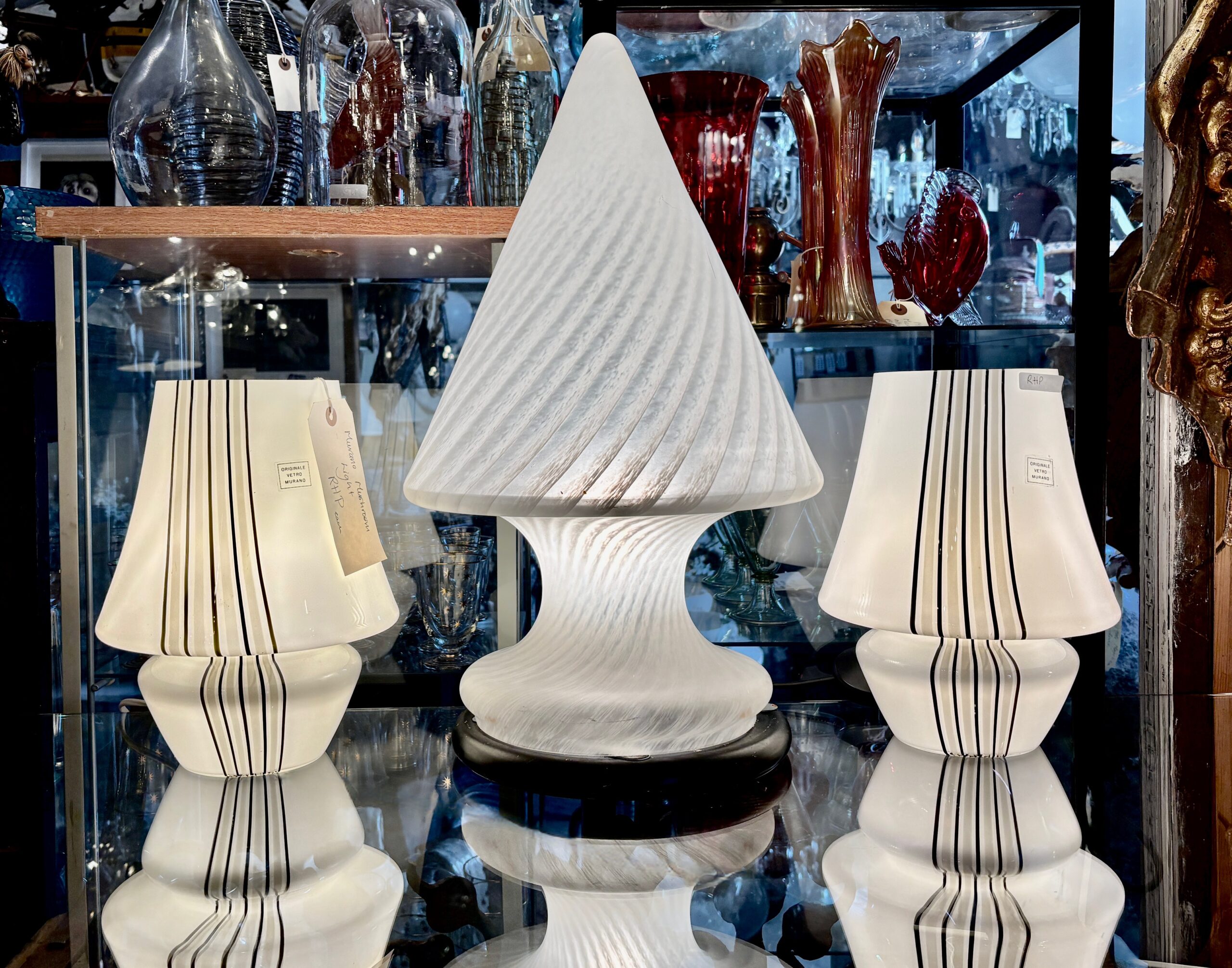 Italian mid-century Murano glass swirl lamp. 53cm (21″) x 23cm (9″) (IPP)